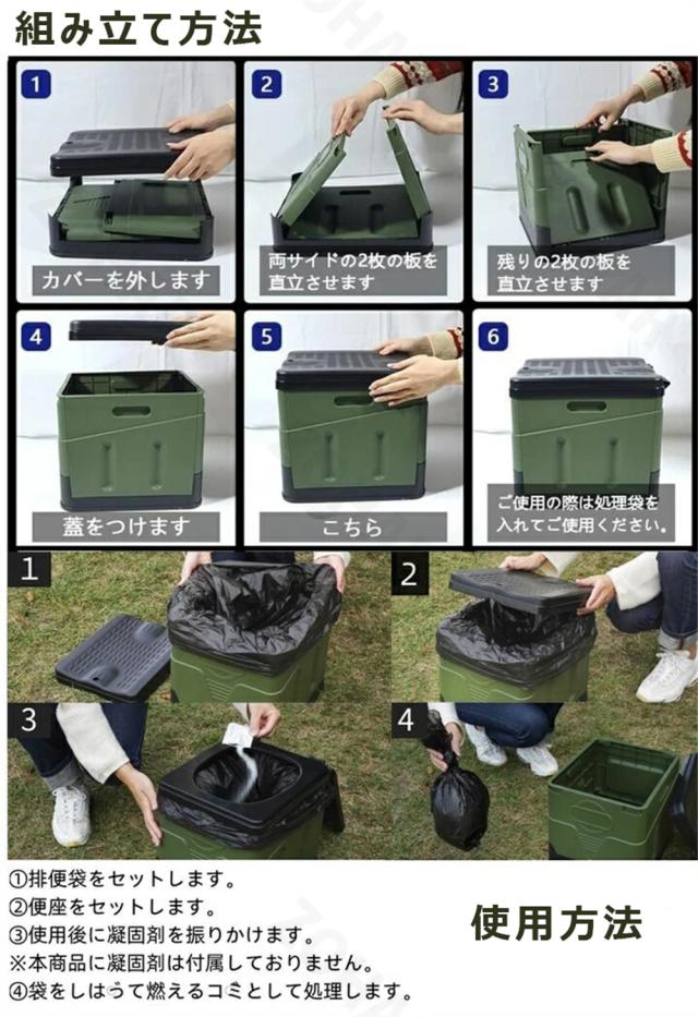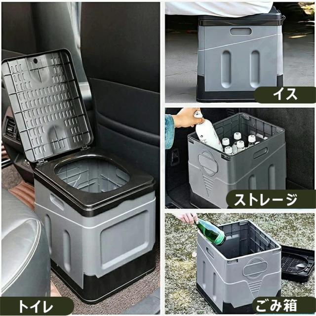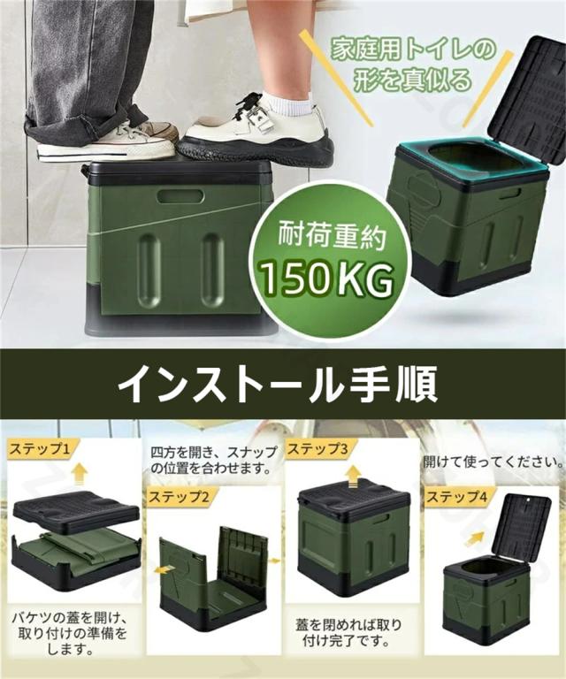 緊急時の簡易トイレだけでなく、この製品は様々な用途に使えます。スツールやゴミ箱など、キッチン、玄関、アウトドアなどの場所で日常的に使用することができます。この多機能な設計により、このトイレは非常に実用的な家庭用品となっています。