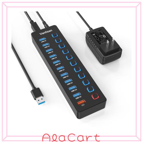 vantisan USBハブ 電源付き USB3.0ハブ 10ポートの 拡張+ 1充電ポート セルフパワー/バスパワー USB Hub 5Gbps高速データ伝送 USB3.0 拡