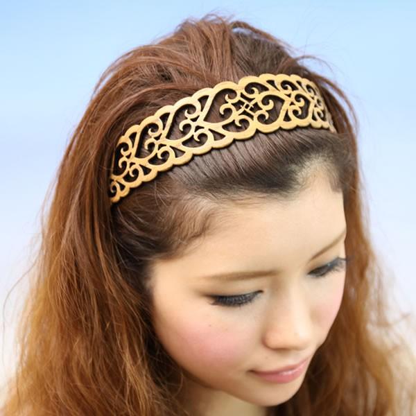 すかし細工 ウッド調カチューシャ エタニティハート