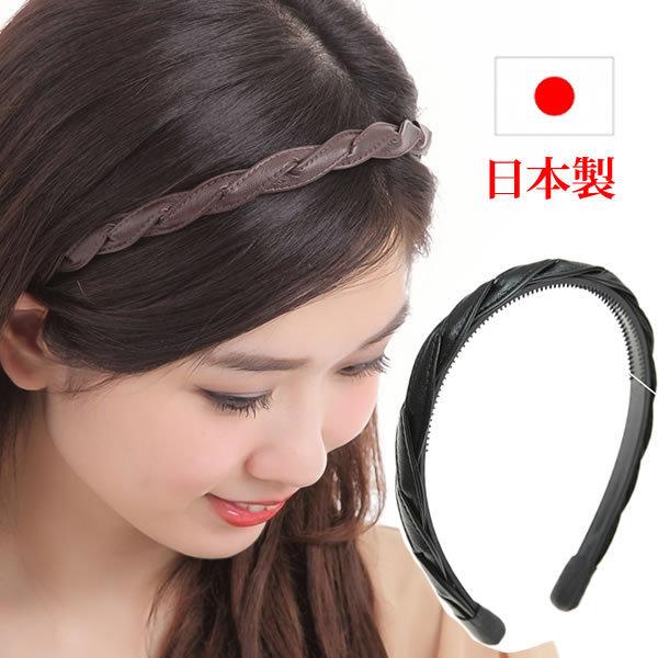 カチューシャ 痛くない いたくない 日本製 フェイクレザー 合皮 ツイスト 編み込み 大人 es3
