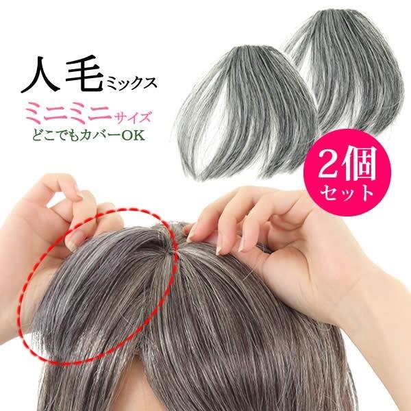 白髪 グレーヘアー 2個組 総手植え ミニミニサイズ使いやすい 小さなサイズのウィッグちょこっとだけ、ふわっとしたい方に髪なじみが良く、着け心地も楽ちんブロー・コテOK!ご自身のヘアスタイルに合わせてアレンジできますミニサイズなので、持ち運べて便利小さなウィッグなので、メッシュとしてもお楽しみ頂けます■2個組の価格毛の長さ:約12cm、土台横幅:約3cm(デザインの特性上短い髪の毛も含まれております。製品に個体差がございますので目安の長さです素材:黒髪部分:人毛100%、白髪部分:耐熱日本製人工毛ストレート、ワンタッチピン1ヶ付製品特性上、白髪ミックスカラーのため色の出方に若干の個体差がございます人毛特有の匂いが気になる場合は風通しの良い日陰で数日干してからご使用下さい白髪タイプについてできるだけ実物に近いお色に調整しておりますが、白髪という商品の特性上光の加減によってお色の見え方が若干異なって見える場合がございます。撮影時には強い光をあてて撮影をしておりますので、実際よりも光沢感が出ている場合がございますが、実際には光沢感の少ない素材となっております。