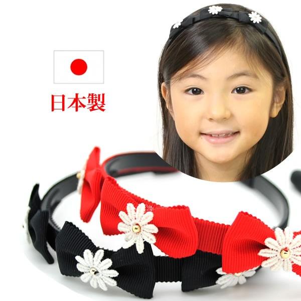 カチューシャ 痛くない いたくない 日本製 キッズ リボン 赤 子供 花 フラワー デイジー A-8