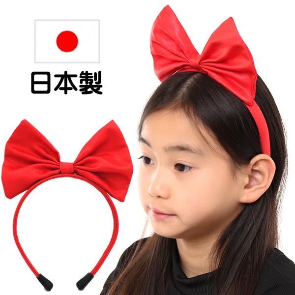 カチューシャ 痛くない いたくない 日本製 リボン 赤 キッズ 子供 サテン ハロウィン コスプレ アリス 魔女 レッド 白雪姫 七五三 仮装 グログラン kd23