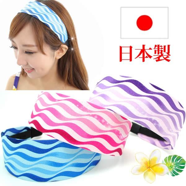 カチューシャ 痛くない いたくない 日本製 幅広 ハワイアン 波 ウェーブ ダンス グラデーション 巾50mm lx-wave