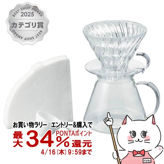 【お買い物ラリー 最大34%還元】HARIO S-VGBK-02-T Simply V60グラスブリューイングキット[ドリッパーセット クリア 耐熱ガラス 600ml 1-4杯用 ][食洗機対応][送料無料] (6059694)