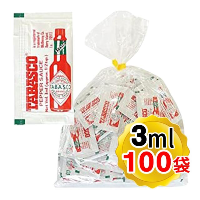 タバスコ ペパーソース ミニパウチ 1袋 (3ml)×100袋セット 小袋 ホットソース ピザ パスタ 唐辛子 調味料 使いきり 携帯用(メール便発送・追跡番号有り)