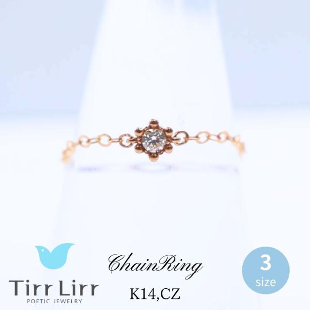 チェーンリング K14 指輪 TirrLirr レディース ピンクゴールド キュービック 40代 30代 20代