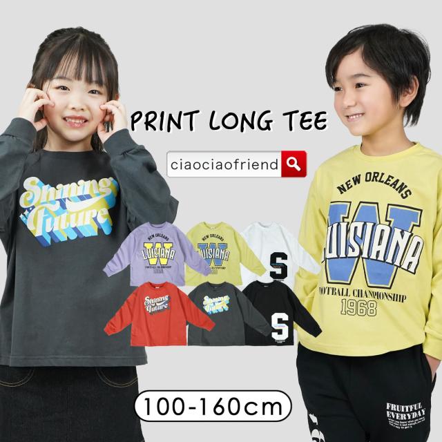 長袖Tシャツ 子供服 プリントロンT 綿 綿100% ロングTシャツ プリント ロゴ 文字 通園通学 子ども服 こども服 子供 子ども こども キッズ 男の子 女の子 男子 女子 男児 女児 長袖 カジュアル シンプル