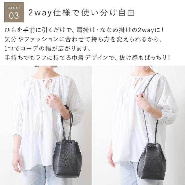 バッグ レディース 巾着 ショルダーバッグ ミニショルダーバッグ キューブ型バッグ バケツ型バッグ 斜めがけ 肩掛け ミニバッグ 2way 本革 牛革 レザー 小さめ 軽い 軽量 レディースバッグ 日本製 おしゃれ かわいい 旅行 黒 ブラック Recipe レシピ KINCHAKU bag B-20