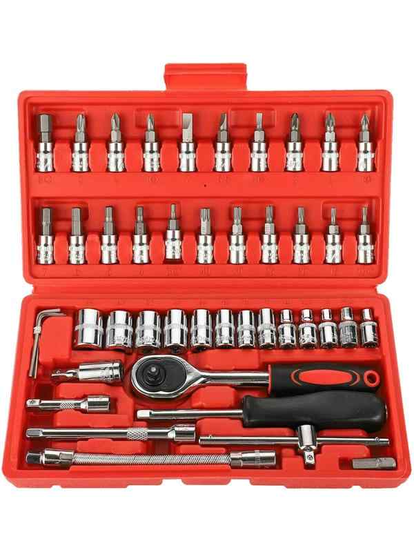 Rikopin(リコピン) ソケットレンチセット 差込角6.3(1/4インチ)車レンチ スリーブ ラチェットレンチ 46 ソケットドライバー組み合わせ ツール (レッド)