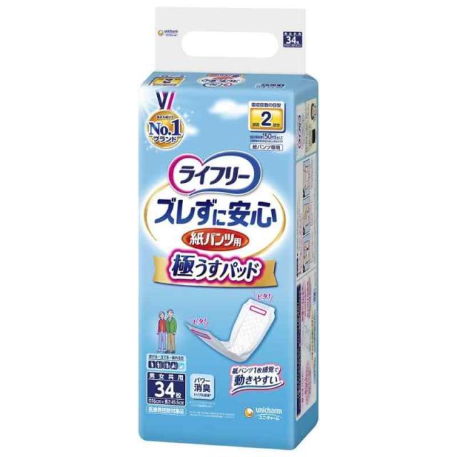 ライフリー パンツ用尿とりパッド ズレずに安心うす型 紙パンツ専用 2回吸収 34枚