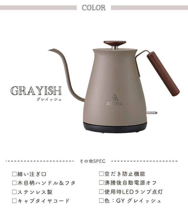 グレイッシュカラーと木目柄がお洒落な電気カフェケトル。