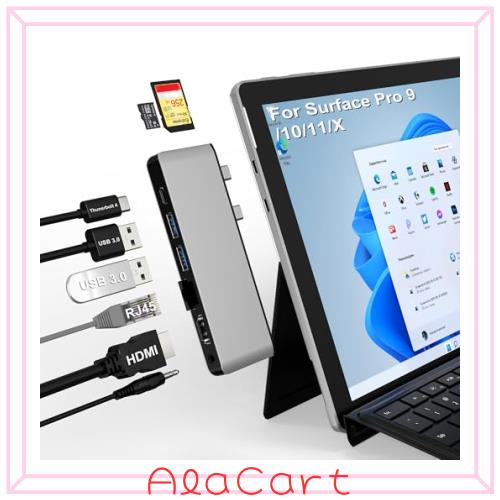 Surface Pro 9/10/11/X USB ハブ 4K HDMI、USB-C Thunderbolt 4 (8K@30Hz ディスプレイ+40Gデータ+100W充電)、100M LAN、2xUSB3.0、SD TF