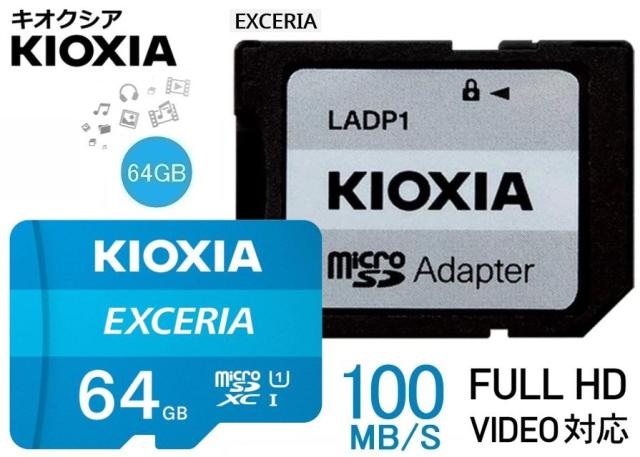 KIOXIA microSDXCカード64GB EXCERIA Class10 UHS-I対応 100MB/s アダプター付属 キオクシア フルHD録画対応カード LMEX1L064GG2 防水