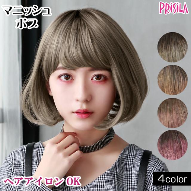 ウィッグ ボブ フルウィッグ マニッシュボブ グラデーションカラーウィッグ プリシラ CTA-677 耐熱 ウイッグ かつら PRISILA | コスプレ 自然 おしゃれ かわいい 可愛い 小顔 簡単 お手軽 女性