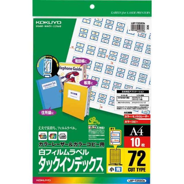 コクヨ カラーレーザー カラーコピー タックインデックス フィルムラベル 小 青 LBP-T2593B