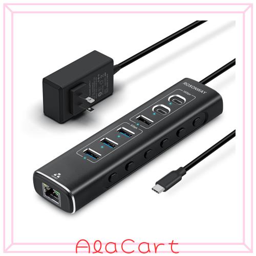 ROSONWAY USB ハブ10Gbps 7 in 1 LAN変換アダプター USB C 3.2x2 USB A 3.2x1 USB 3.0x3 アルミ製 USB HUB セルフパワーとバスパワー両用
