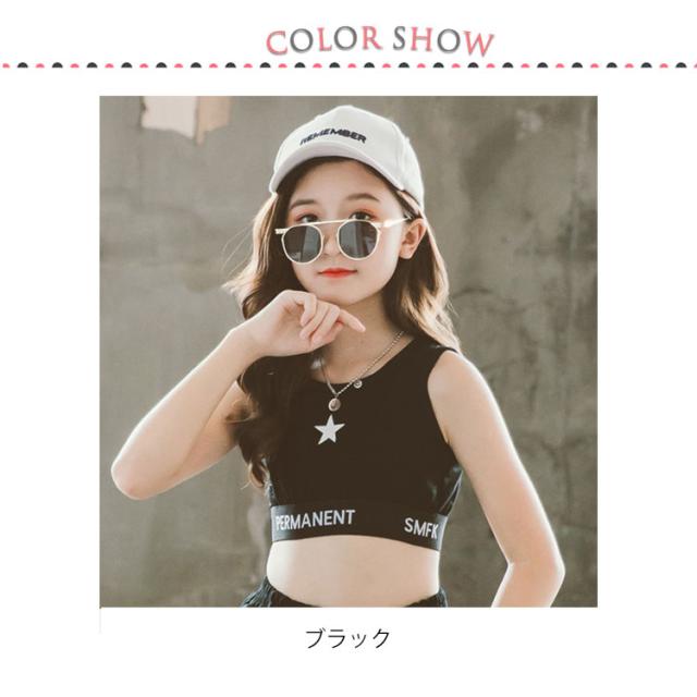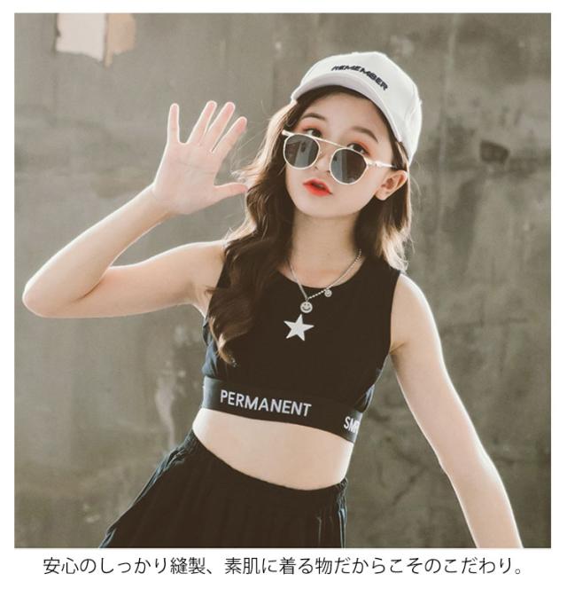 110-160 子供服 ハーフトップ タンクトップ 星柄 キッズ 女の子 ダンス ヒップホップ スポーツ ステージ衣装 ヒップホップ k-pop衣装 演出服 ジャズダンス 小学校 重ね着 キャミソール 黒 へそ出し ショート丈 トップス