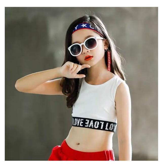 子供服 ハーフトップ タンクトップ ロゴ キッズ 女の子 ダンス スポーツ へそ出し ステージ衣装 ジャズダンス 重ね着 キ ャミソール 黒 ノースリーブ かわいい ガールズ ヒップホップ kpop 韓国 ロゴ ストリート 子供 女の子