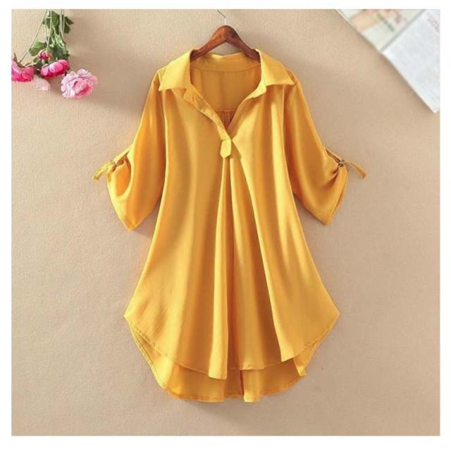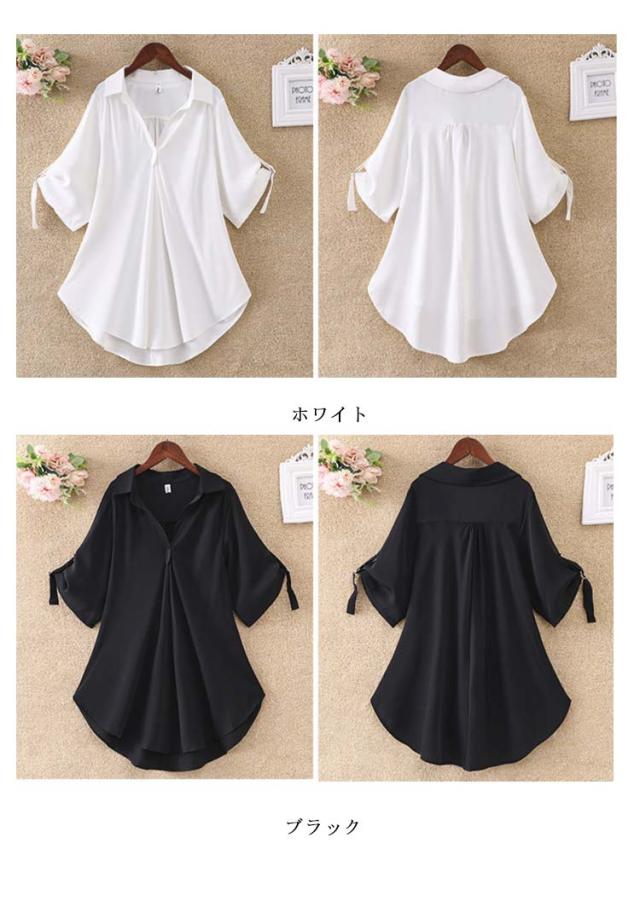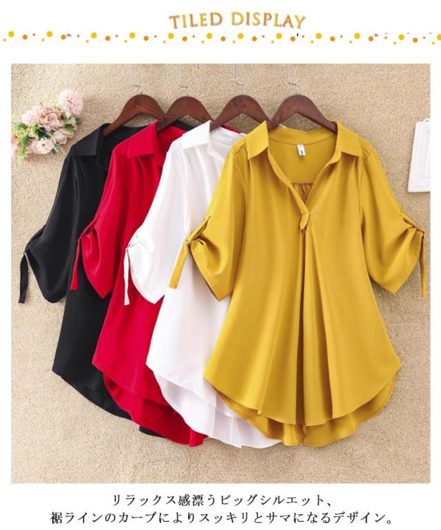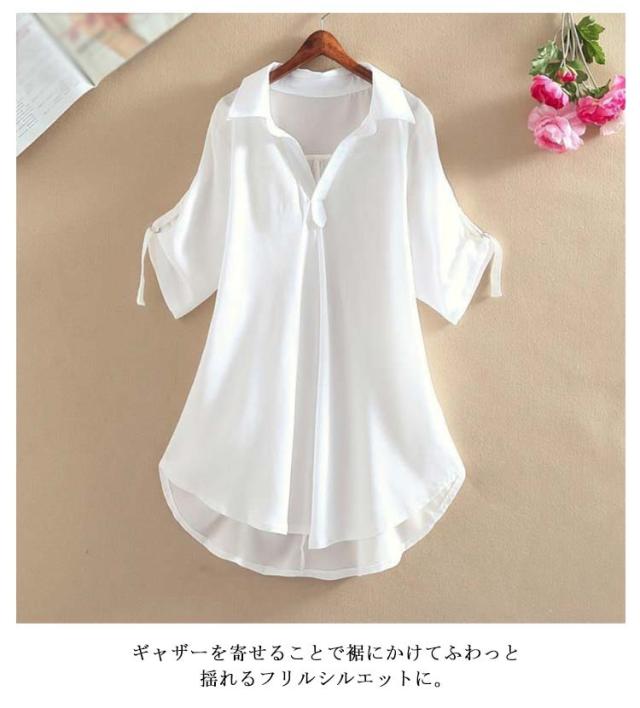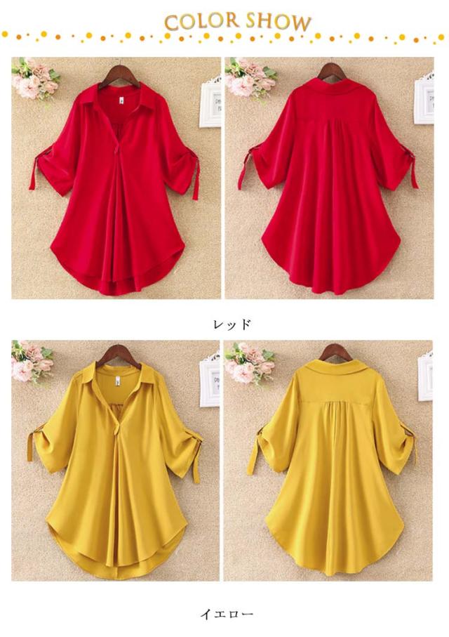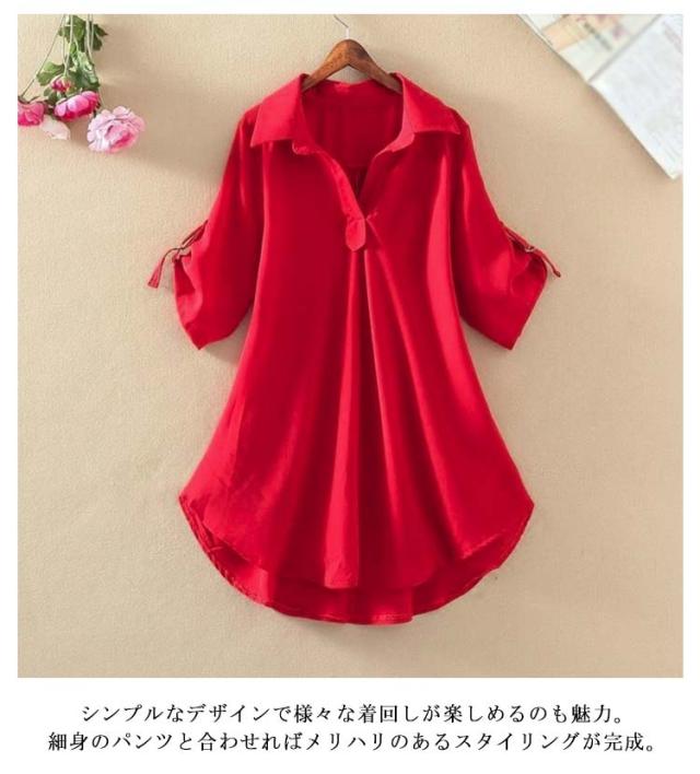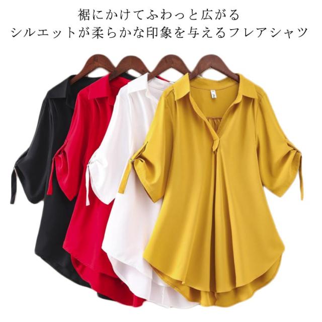 フレアシャツ ブラウス 春秋 チュニック レディース 春 5分袖 ロングシャツ フレア トップス 秋 チュニック Aライン ナチュラル 襟付き 体型カバー ゆったり 大きいサイズ シャツブラウス ロング丈 無地 ボタン付き 30代 40代 通勤 大人女性 送料無料