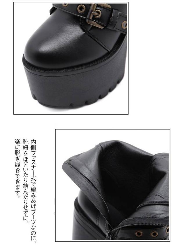| 超足長美脚のベルト風編み上げショートブーツ。 15cmのハイヒールで身長が14cm以上アップ! 6.5cm厚底ストーム付きだからヒールとの高低差が優しくなり、歩きやすくて疲れにくい。 内側ファスナー式で編みあげブーツなのに、靴紐をほどいたり結んだりせずに、 楽に脱ぎ履きできます。 マニッシュからガーリー、和装など、どんなコーデにも合わせやすい。 ハロウィンの仮装やコスプレ・舞台・撮影の衣装にもお勧め! | |