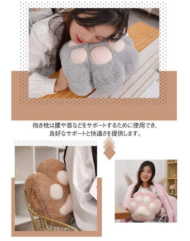 猫の爪 肉球 抱き枕 クッション ぬいぐるみ 可愛い 枕 車用枕 背当て 腰当てクッション 両手が通せる オフィス 自宅 お昼寝や仮眠に 寝具 寒さ対策 ふんわり 癒し 誕生日 プレゼント ギフト 送料無料