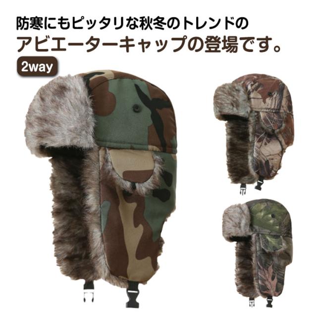 送料無料 リーフ カモフラ 迷彩 パイロットキャップ メンズ ファー 耳あて付き 2WAY アビエーター フライトキャップ 帽子 アビエーターキャップ 秋 冬 迷彩 飛行帽 イヤーマフ アウトドア 耳あて 耳つき レディース かわいい 暖かい あったか 防寒 保温 ワークマン