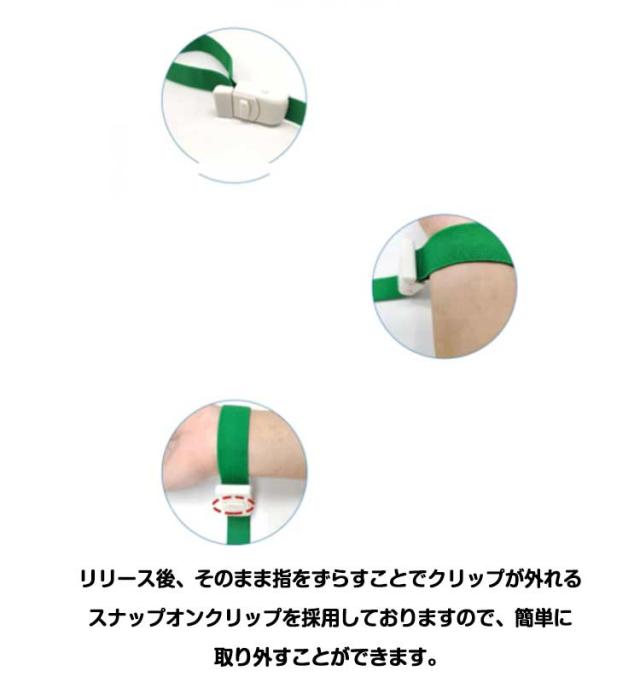 | 20本セット 軽く収納便利商品 着脱、締め付け、すべてが簡単にできるワンタッチタイプの軽量駆血帯。 人間工学を基に設計されたバックルは、手にスムーズにフィットし、使用の際にストレスを感じさせません。 リリースボタンは、わずかな力でバンドを緩めることができます。 リリース後、そのまま指をずらすことでクリップが外れるスナップオンクリップを採用しておりますので、簡単に取り外すことができます。 | |