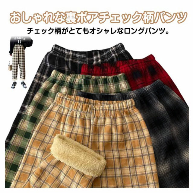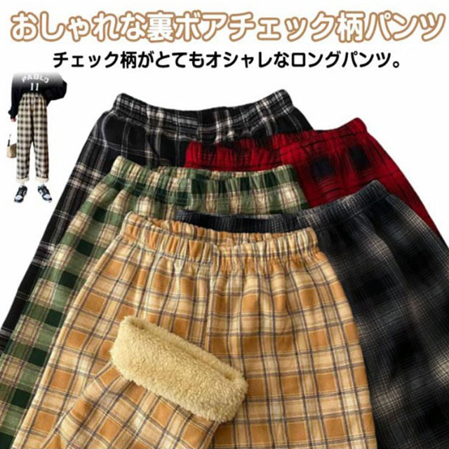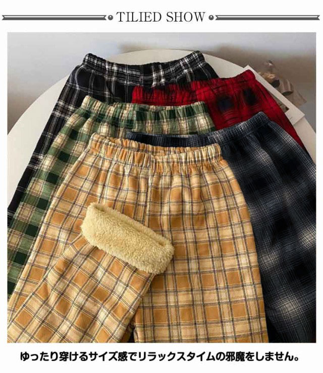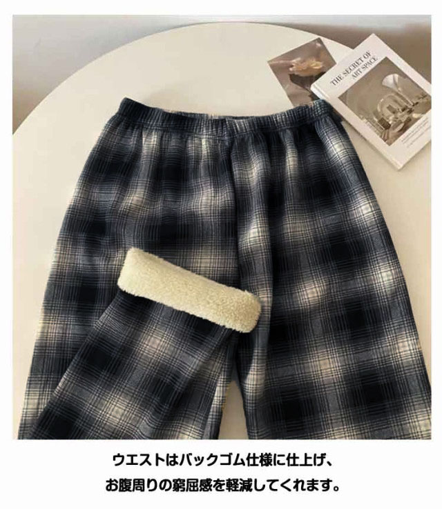 裏ボア ロングパンツ ワイドパンツ 厚手 ルームパンツ レディース チェック柄 おしゃれ 春秋 ボトムス 長ズボン 部屋着 体型カバー ウエストゴム ハイウエスト ゆったり 幅広 おしゃれ カジュアル かわいい リラックス デイリー 送料無料