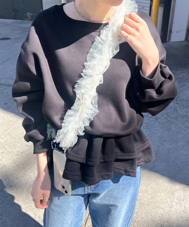 シンプルでありながら、女性らしさを引き立てるティアードフリル
