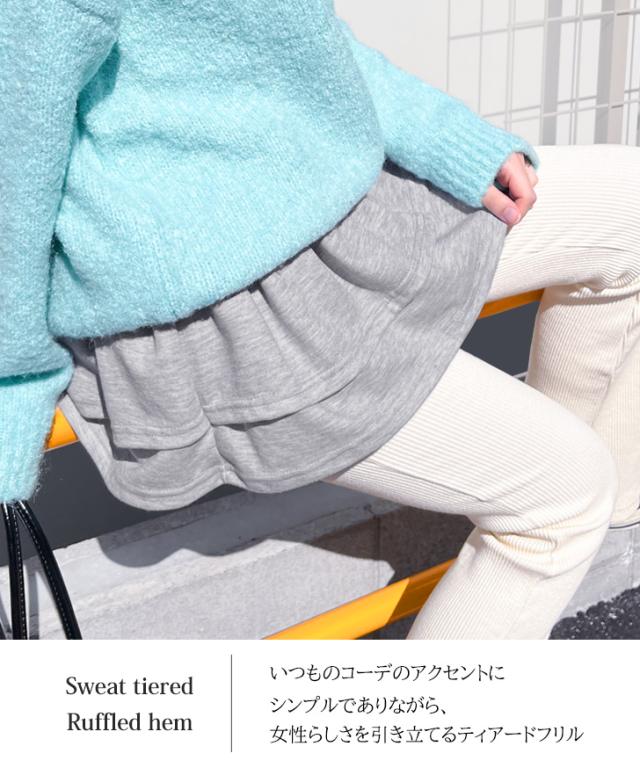 ティアードフリルスウェットシンプル付け裾 レディース レイヤード風 重ね着風 腹巻き つけ裾 フレア Aライン ウエストゴム トップス ボトムス スエット おしゃれ 可愛い フェミニン カジュアル ふんわり つけすそ 裾出し チラ見せ 腰まわり フェイク ミニスカート 膝上 カットソー 裾フリル ストレッチ デイリー 体型カバー 韓国 白 黒 グレー フェイクレイヤード レイヤードスカート 腹巻 付けすそ 短め 短い ショート ミニ 2段フリル 二段フリル 伸縮 伸びる ストレスフリー 快適 衣装 トレンド 流行り 人気 ブラック ホワイト 灰色 綿混 コットン混 コットンブレンド 10代 20代 30代 40代 中学生 高校生 大学生 大人 ママ 春 夏 秋 冬 秋冬 春夏 オールシーズン 通年 普段使い 着回し ミニスカ ひざ上 ダンス 発表会 イベント お出かけ 買い物 ショッピング 旅行 トラベル 通勤 通学 学校 オフィス 仕事 職場 会社 ファッション小物 単色 ミニスカート型 インナー 裾 見せ つけ 付け お腹カバー ぽっこりお腹カバー 韓国ファッション かわいい ナチュラル プラスワン
