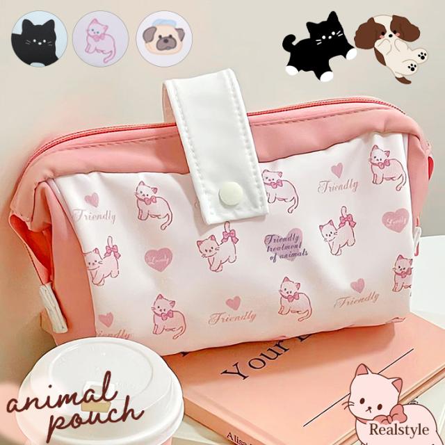 新作 ポーチ 小物入れ レディース ペンケース 筆箱 メイクポーチ 大容量 犬 猫 動物 おしゃれ 男子 女子 学校 かわいい 旅行 バニティ