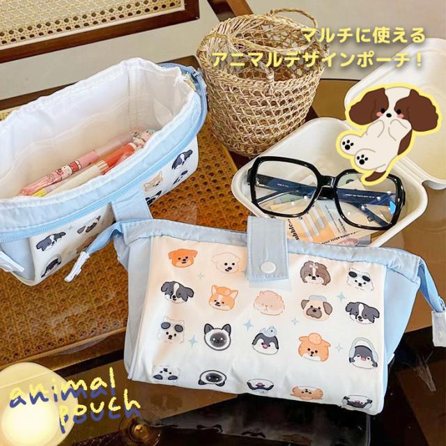 選べる3柄アニマルデザインスナップボタン&ファスナーマルチポーチ ポーチ 小物入れ レディース 犬 猫 動物 ペンケース 筆箱 大容量 女子 女の子 子供 キッズ 学校 メイクポーチ 化粧 おしゃれ かわいい マルチポーチ 軽量 収納 アニマル ネコ イラスト ペンポーチ 筆入れ 文房具 筆記用具 文具 小学生 中学生 高校生 大学生 大人 化粧ポーチ コスメ バニティ ペン入れ ふでばこ 定規 15cm 大きめ 大きい コスメポーチ 化粧品 メイク道具 小さめ 小さい 軽い コンパクト ファスナー マチ付き マチあり 仕切り 整理整頓 イヌ いぬ ドッグ dog ねこ キャット cat 黒猫 リボン ペンギン 鳥 お洒落 可愛い オシャレ カワイイ シンプル カジュアル ポップ 韓国 北欧 海外 y2k レトロ 平成 ブルー 青 水色 ネイビー 紺 ピンク 会社 仕事 オフィス ビジネス OL 事務 出張 社会人 学生 小学校 低学年 中学年 高学年 中学校 高校 通園 入園 保育園 幼稚園 園児 年少 年中 年長 デイリー 普段使い 旅行 トラベル プレゼント ギフト 贈り物 新生活 卒業 卒園 入学 進学 新学期 チワワ シーズー ラブラドールレトリバー ラブラドールレトリーバー マルチーズ トイプードル ポメラニアン ボーダーコリー パグ ハムスター コーギー ペンギン 茶トラ チャトラ シャム ロシアンブルー