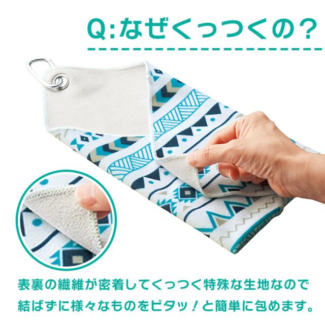 くっつき タオル くっつく クロス ハンカチ 吸水 ぺたぺた ペタペタ 北欧 風呂敷 ポーチ 折り畳み傘 ペットボトル カメララップ カラビナ付き 保護 カバー 吊り下げ