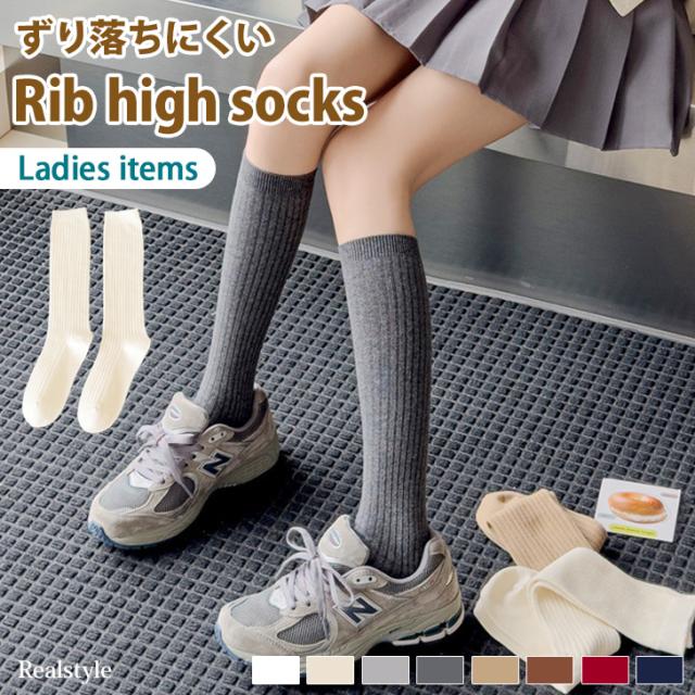 新作 靴下 ハイソックス クルーソックス レディース 薄手 春 夏 綿混 黒 白 紺 おしゃれ カジュアル フォーマル 学校 リブ 無地 女性