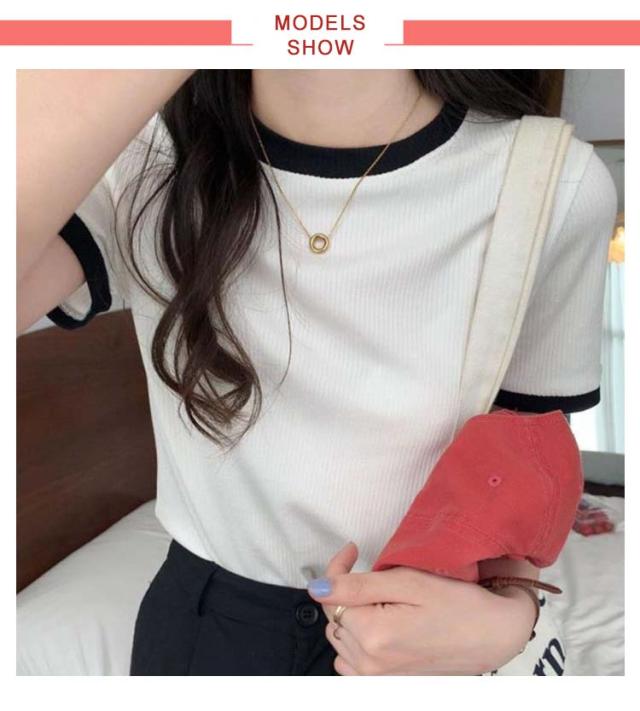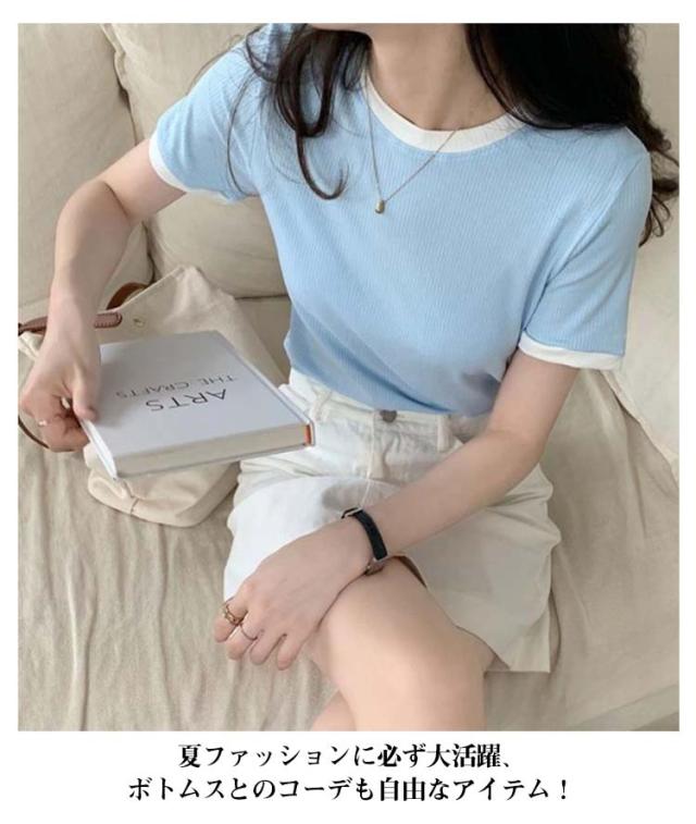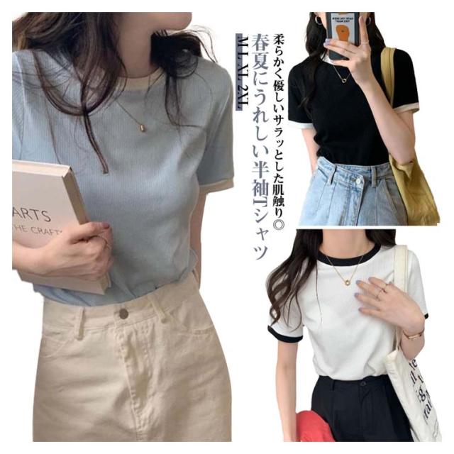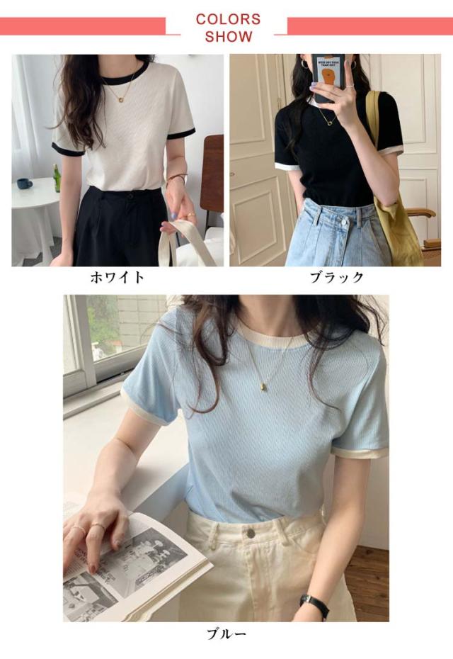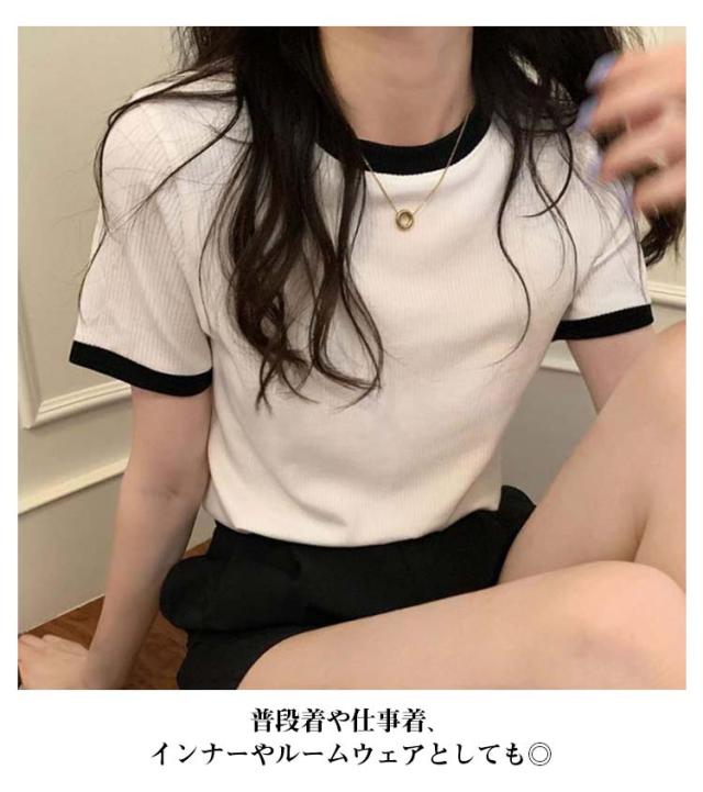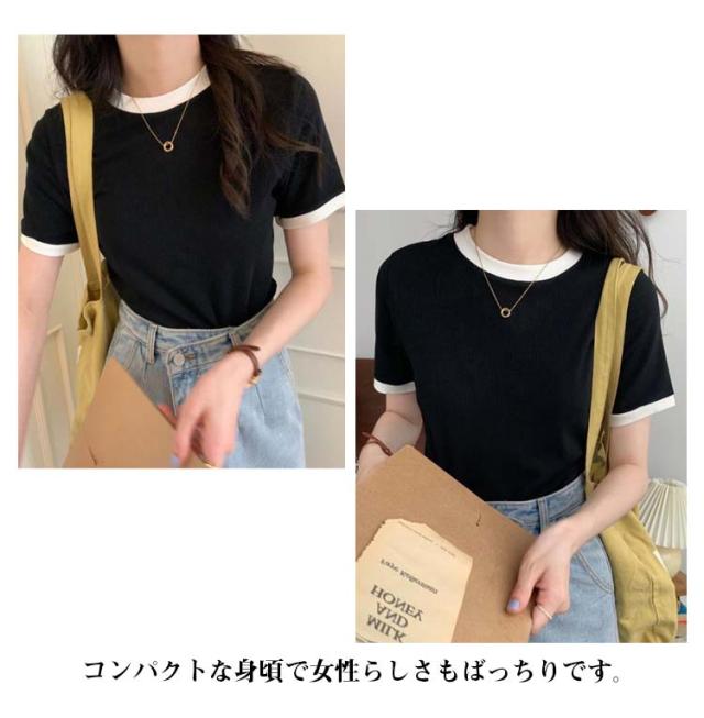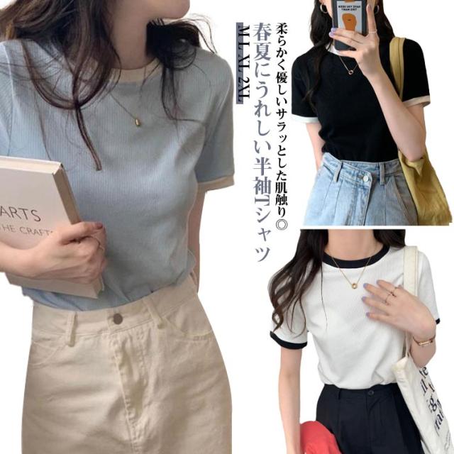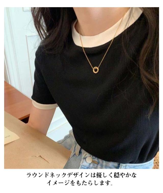 バイカラー 半袖tシャツ レディース 半袖 Tシャツ 夏 カットソー 薄手 プルオーバー トップス おしゃれ カジュアル 通勤 通学 フェミニン 重ね着 シンプル 無地 大人可愛い ミディアム丈 着?せ サマーtシャツ 送料無料