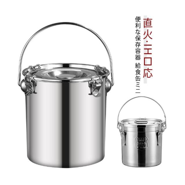 ステンレス保存容器 給食缶 ミニ ステンレス製 5L 保存容器 直火対応 ガスコンロ対応 IH対応 ステンレス鍋 蓋付き 作り置き 食品保存 汁物でも漏れない構造 90度回転式のハンドル 空気弁 キャンプ ピクニック アウトドアライフ 温め専用