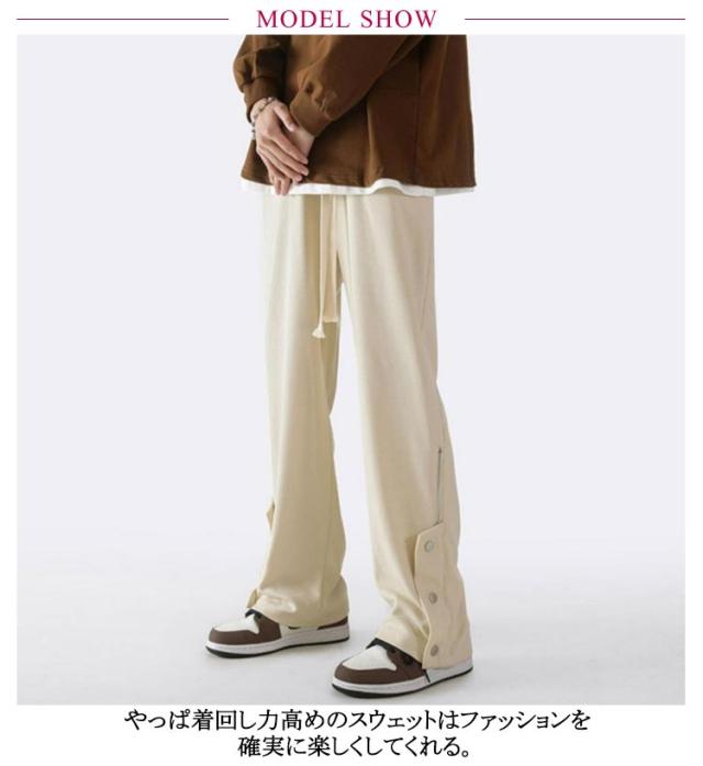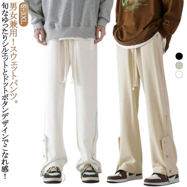 スウェットパンツ メンズ レディース サイドボタン 裾ボタン サイドファスナー ジャージ 下 スエットパンツ ゆったり 大きいサイズ 韓国ファッション ワイドパンツ おしゃれ ストリート ダンスパンツ バスケパンツ 無地 スポーツウェア カジュアル 春 秋 春服 秋服 送料無料
