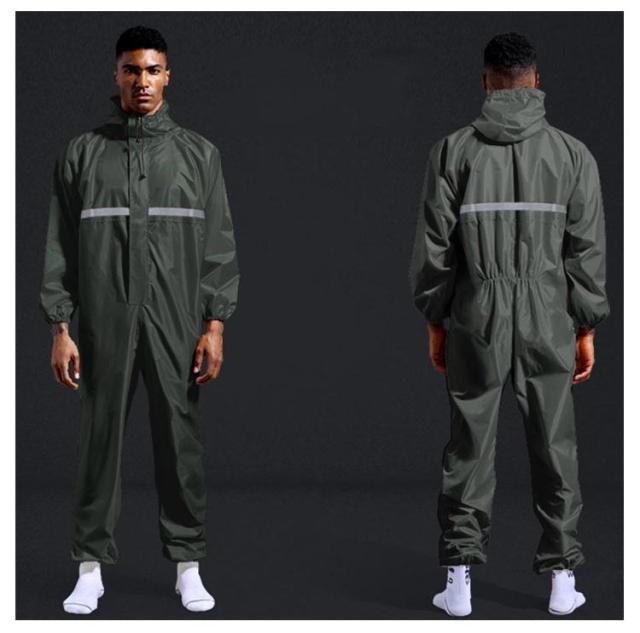 レインコート 防水つなぎ レインウェア 反射テープ 袖口ゴム 裾ゴム レインスーツ メンズ ロング 防水 防油 ジャンプスーツ 雨具 かっぱ カッパ 大きいサイズ 雨 対策 シンプル フード付き 雨天作業 台風 ハイポンチョ 送料無料