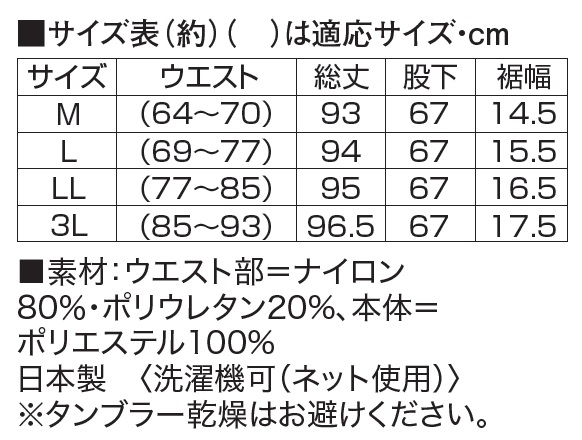 ●素材:ウエスト部=ナイロン80%・ポリウレタン20%、本体=ポリエステル100%