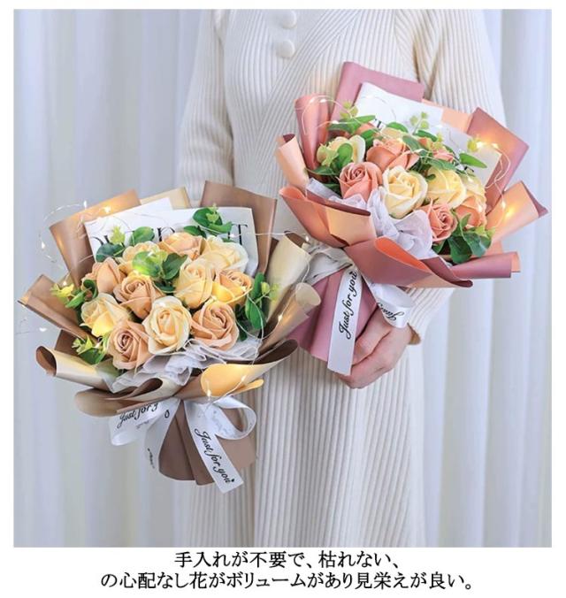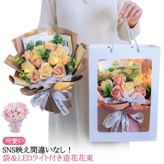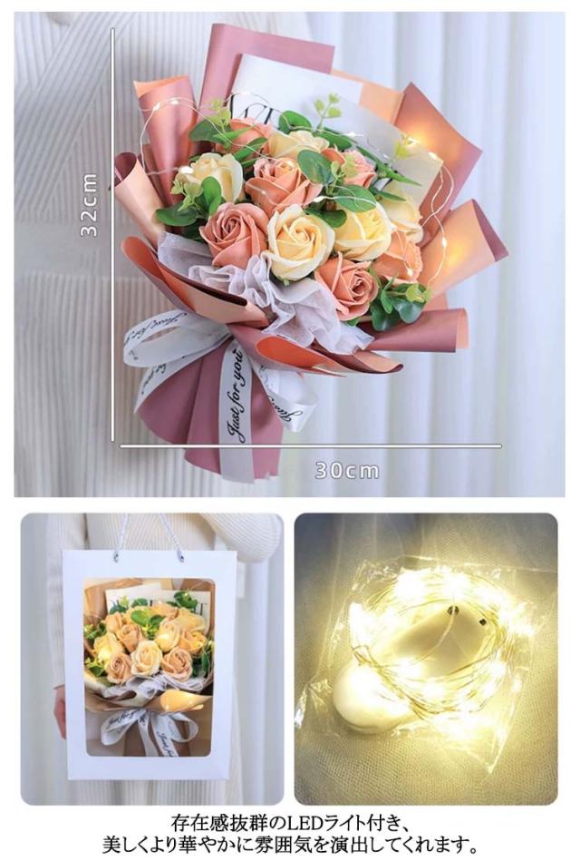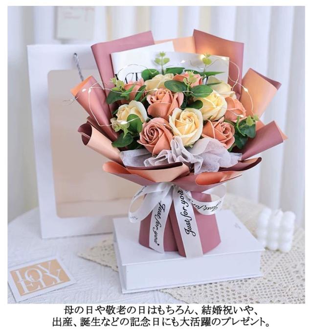 ソープフラワー ソープフラワー ギフト ドライフラワー バラ 光る LEDライト付き 花束 ブーケ 薔薇 造花 枯れない花 石鹸花 石けん花 母の日 母親 祖母 プレゼント ギフト 記念日 退職祝い 開店祝い お見舞い 贈り物 発表会 合格祝い
