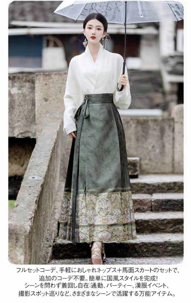 馬面スカート トップス セットアップ マミアンスカート ロング丈 マキシスカート ラップスカート 巻きスカート サーキュラースカート マキシ スカート エスニック シック エレガント チャイナ服 漢服 民族風 ナチュラル 復古風 写真撮影 中国宮廷風 唐装