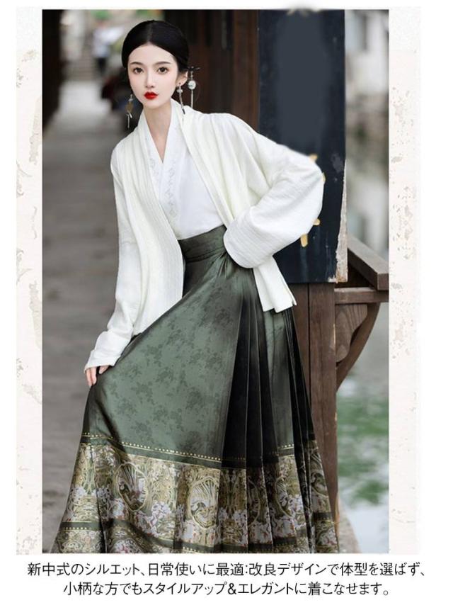 | 中国の風情とモダンデザインを融合した、新中式改良漢服セットアップ。 小柄な女性のために特別に設計され、伝統漢服のエレガントさを残しながら、日常でも気軽に着られる実用性を兼ね備えています。 国風ファッションを手軽に楽しめる一着です。 フルセットコーデ、手軽におしゃれ:トップス+馬面スカートのセットで、追加のコーデ不要。簡単に国風スタイルを完成! 新中式のシルエット、日常使いに最適:改良デザインで体型を選ばず、小柄な方でもスタイルアップ&エレガントに着こなせます。 クラシックな馬面スカート、優雅なシルエット:立体的なプリーツが美しく揺れ、歩くたびに上品な雰囲気を演出。 厳選された生地:高品質な生地などを使用し、通気性が良く、春・秋・冬のさまざまなシーンに対応。 シーンを問わず着回し自在:通勤、パーティー、漢服イベント、撮影スポット巡りなど、さまざまなシーンで活躍する万能アイテム。 | |