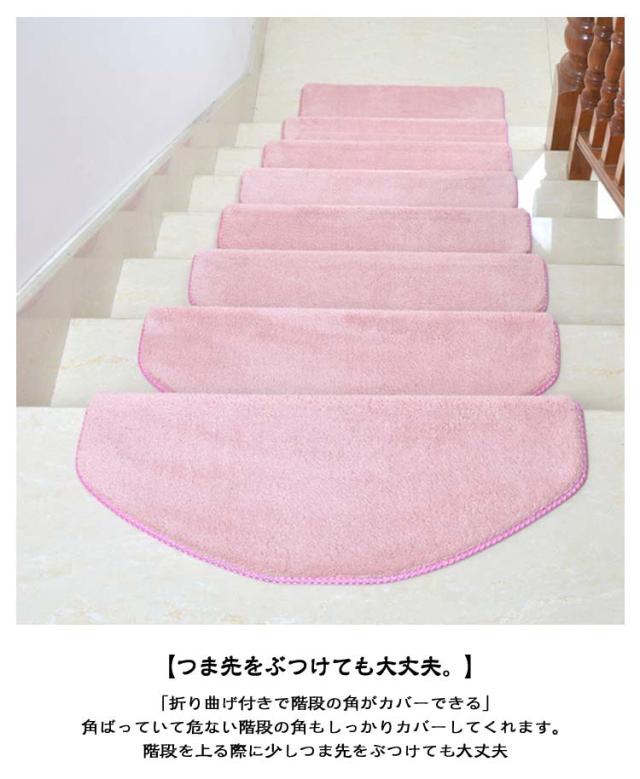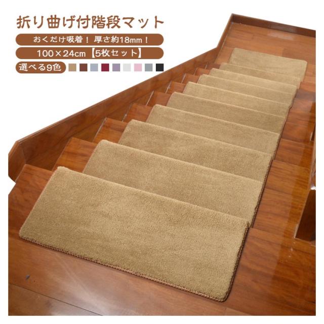 【5枚セット】 階段マット 100×24cm 吸着 滑り止め 厚手 折り曲げ 賃貸OK 防音 純色 長方形 弧状 おしゃれ ペット 足冷え 介護 高齢者 転倒防止 カーペット ラグ マット 犬 猫 洗える キズ防止 おくだけ吸着 ずれない 廊下敷き