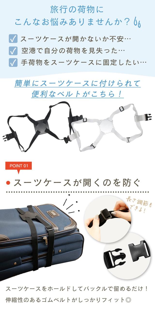 スーツケースベルト/おまけ付き/ゴム/8の字/旅行/キャリーケース/バッグ/ベルト/長さ調節可能/コンパクト/簡単装着/バックル式/止める/黒/落下防止/盗難防止/出張/海外/トラベル/手荷物/固定バンド/アウトドア/ボトル/カップホルダー/ワンタッチ/耐久性/8の字/∞/カバン/結束/防犯/TN-SUBT