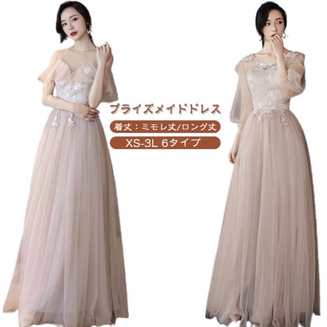 ブライズメイド ドレス 大人 ピアノ 発表会 ロングドレス ミモレ丈 演奏会 演奏会用ドレス 春 夏 秋 冬 ピアノ発表会 結婚式 高校生 パーティードレス 演奏会ドレス 大きいサイズ コンクール イブニング ロング 袖付き 小さいサイズ XS S M L LL 3L ピンク