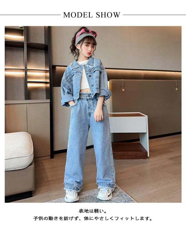 子供服 セットアップ デニム 上下セット ダンス衣装 発表会 キッズ ユニセックス デニムジャケット+ジーンズ 長袖 長ズボン 普段着 キッズ服 ファッション 女児用 女の子 男の子 綿 コットン カウボーイスーツ ゆったり お出かけ 通学着 120-170cm