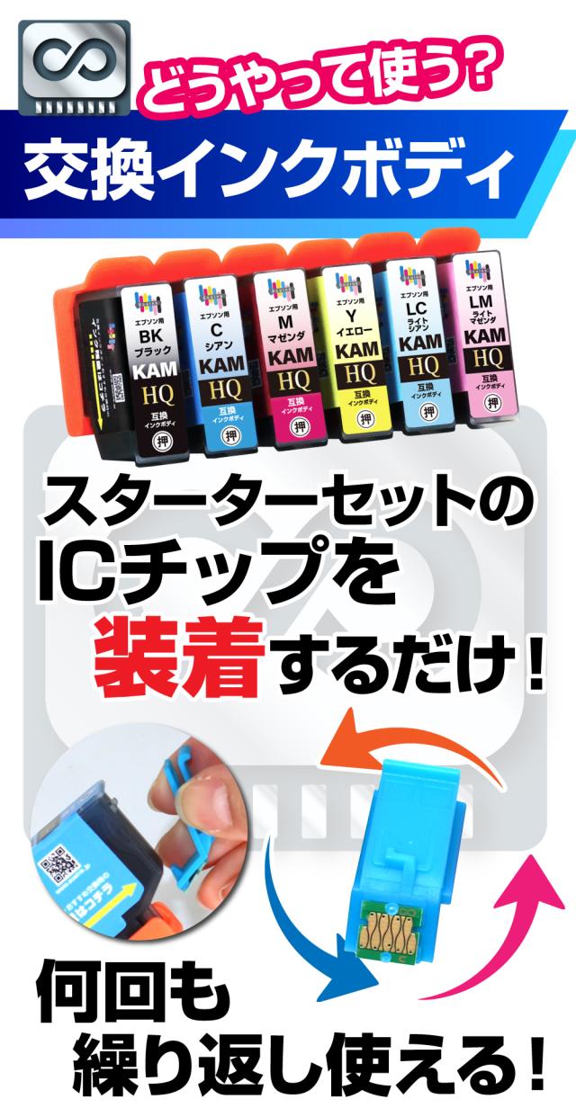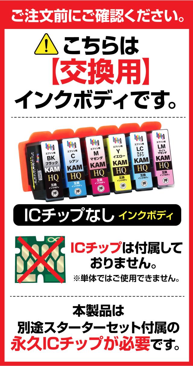 【永久ICチップ 交換用ボディ】 KAM-6CL 6色パック カメ 互換インクボディ KAM かめ【こちらの製品だけでは使用できません。】 エプソン互換 EPSON EP-881AR EP-881AW EP-882AB EP-882AR EP-882AW EP-883AW EP-883AB EP-883AR EP-884AW EP-884AB EP-884AR