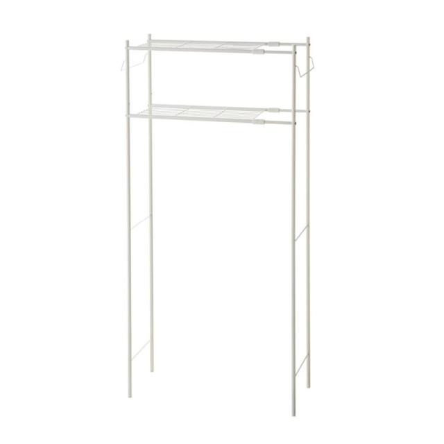 インテリアに馴染むマットな質感。細めのパイプを使用したスリムな洗濯機ラック。シンプルな2段の棚で空間を有効活用できます。