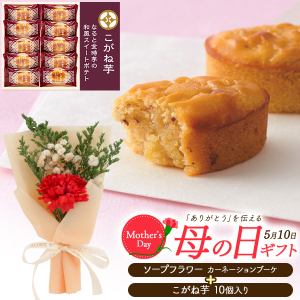 母の日ギフト こがね芋 & ソープフラワー お菓子とお花セット 石鹸のお花とスイーツセット カーネーションブーケ 和風 スイートポテト お菓子 洋菓子 造花 お花 ドライフラワー 常温 贈り物 母親 お母さん ママ 義母 おばあちゃん 花とセット プレゼント 予約 早割 送料無料